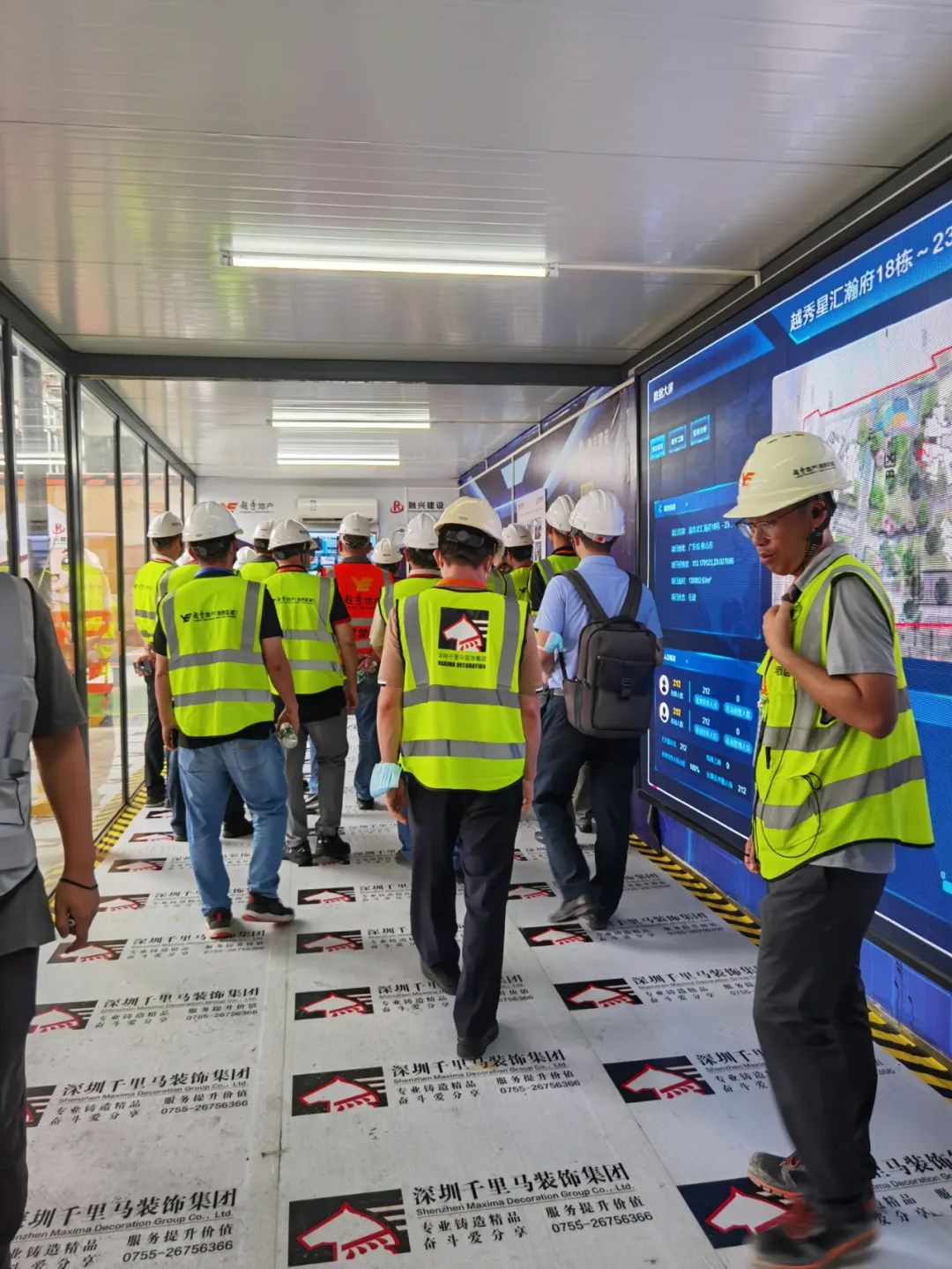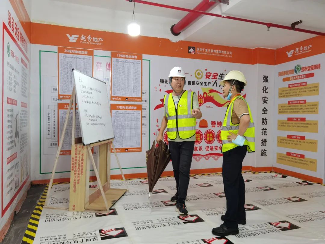 8月13日,越秀地產集團及區域公司在我司承建的越秀星匯瀚府項目20-23棟二次裝修項目上舉行了安全文明質量標桿工地觀摩活動。出席觀摩會的主要領導有越秀地產集團副總經理王榮濤、越秀地產灣西區域總經理陸文軍、越秀地產工管部總經理孟慶恩、越秀地產安監部總經理凌石等一行人、總包融興建設集團韋新丹董事長,千里馬公司董事長李向東、營銷總監時玉香、項目經理李永生陪同參會。