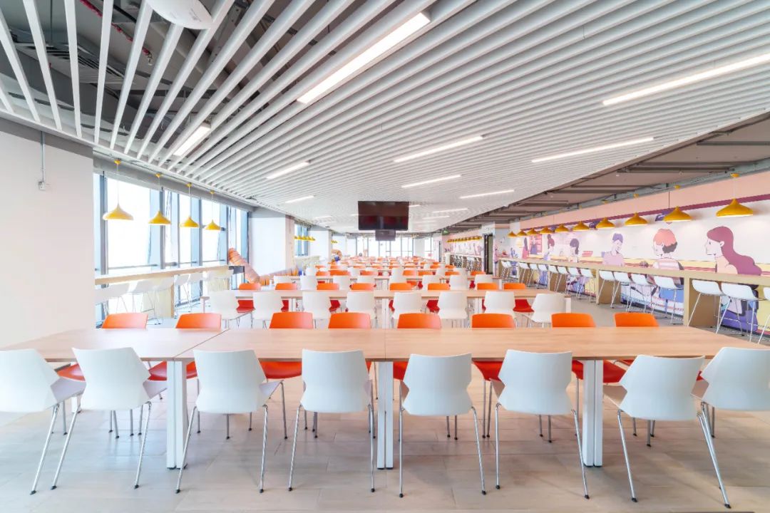 辦公室墻面采用多彩噴繪膜,結(jié)合今日頭條公司的企業(yè)文化,彰顯創(chuàng)新科技綠色建筑的人文關(guān)懷;地面采用膠地板鋪設(shè),會議室等采用降噪的系統(tǒng)玻璃隔斷,給人一種簡潔、高雅、寧靜的感覺。