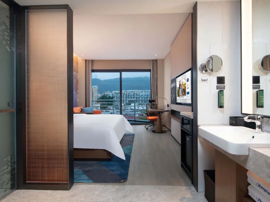 希爾頓歡朋是希爾頓旗下的國際中高端商務連鎖酒店品牌,成立于1984年,2014年進入中國市場 。深圳大梅沙希爾頓歡朋酒店位于深圳的熱門景點-大梅沙海濱公園,毗鄰東部華僑城,酒店周邊環境優美,吃喝玩樂一應俱全,優越的地理位置,一望無際的大梅沙海岸盡收眼底。寶鷹集團負責酒店客房、走廊通道、功能間、弱電系統的裝修施工。
