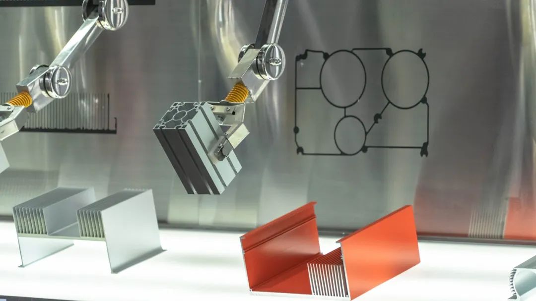 機械臂材料展示柜,將機器元素融入到產品展示中,戲劇化場景的展示,具有很強的科技感也有故事畫面。