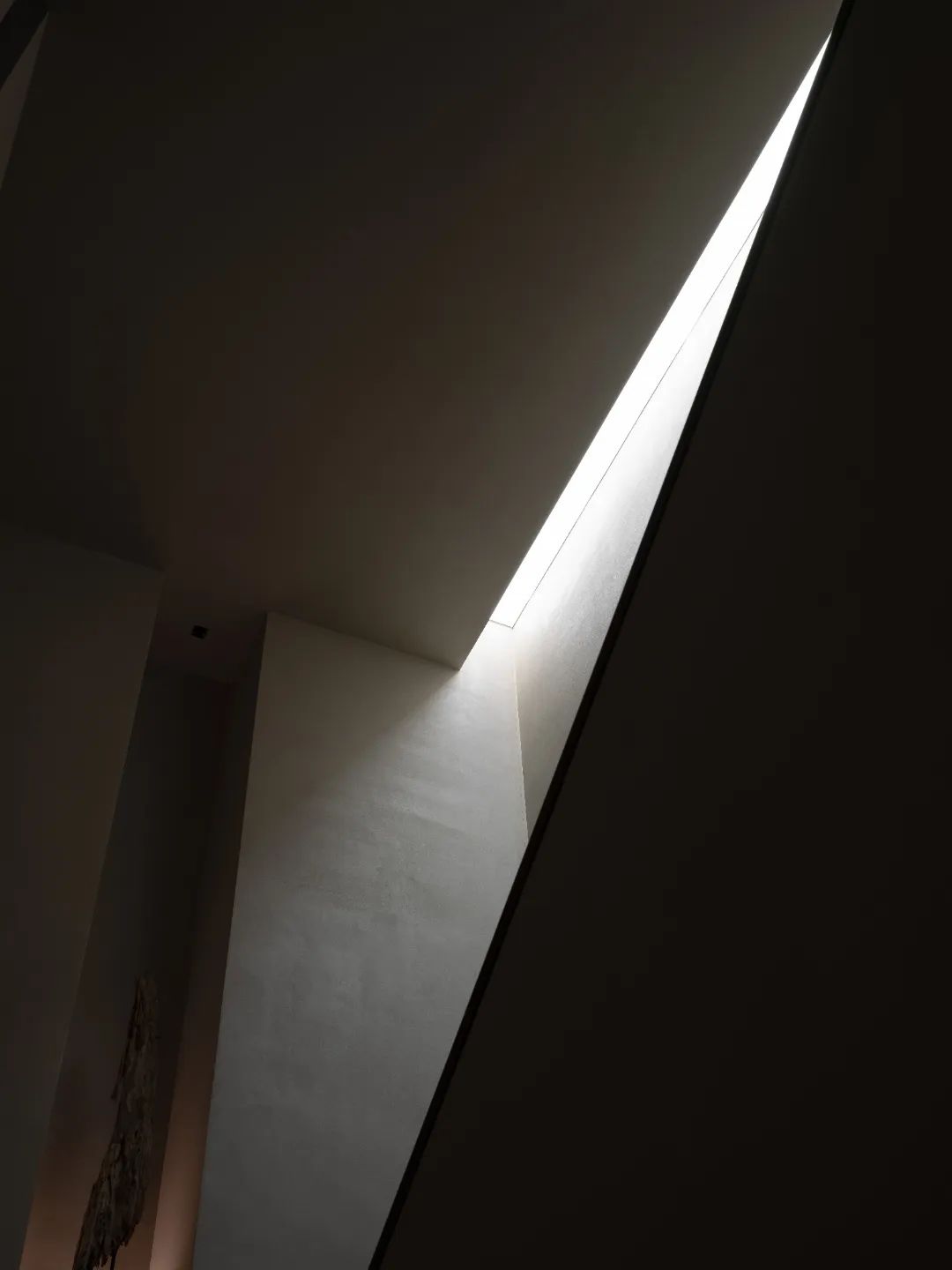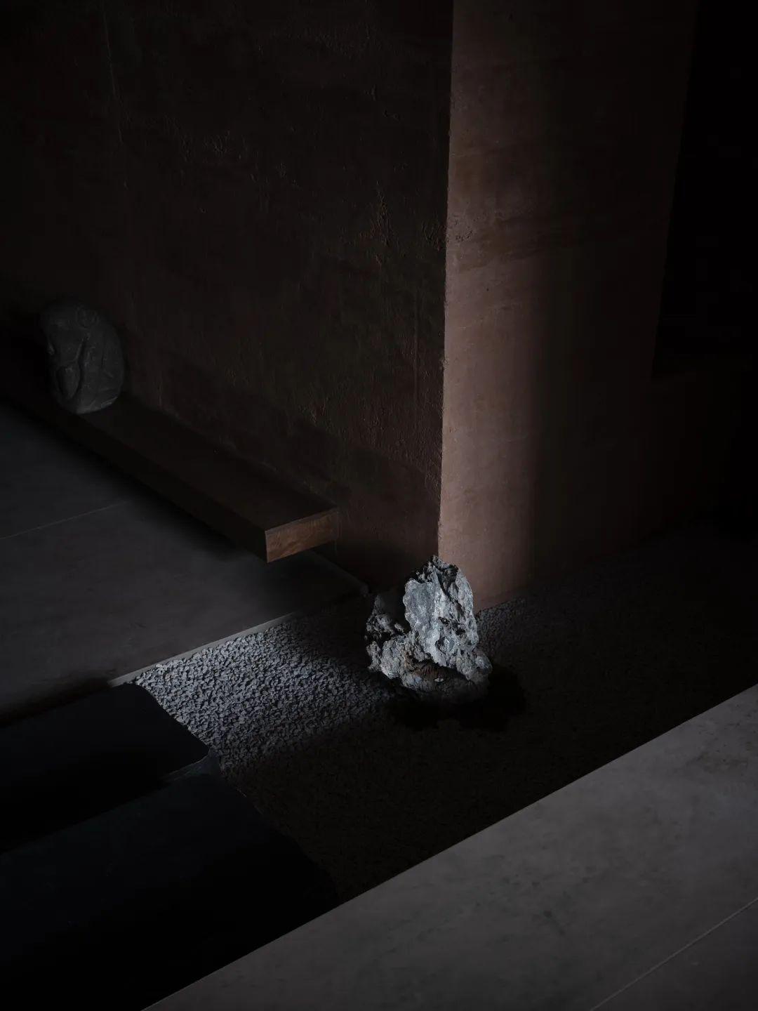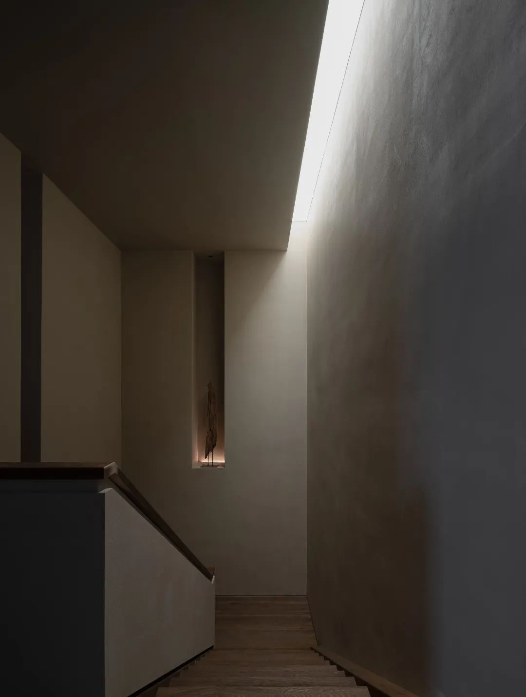 空間有時更像一座橋梁,建立起環(huán)境與人文的密切聯(lián)系。半入的微光將空間純粹化,此時的浮躁與喧囂好似無處遁形,與深邃而神秘的陰影相輔相成,構(gòu)成凝練的幾何形式感。