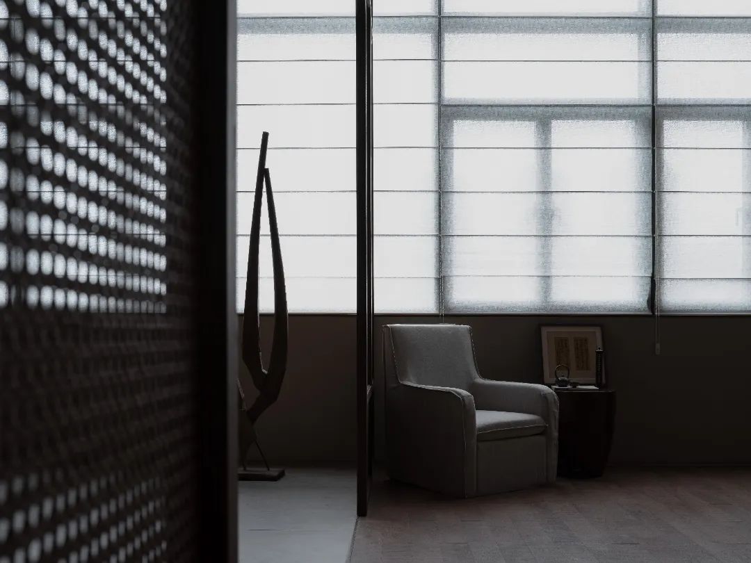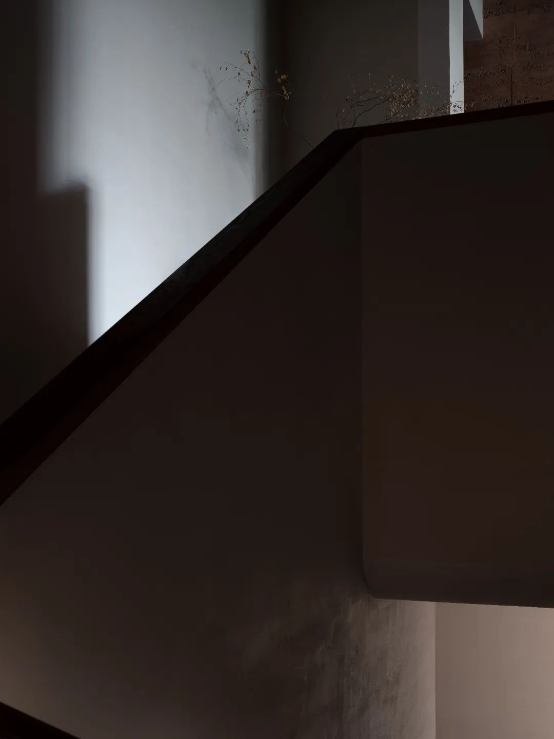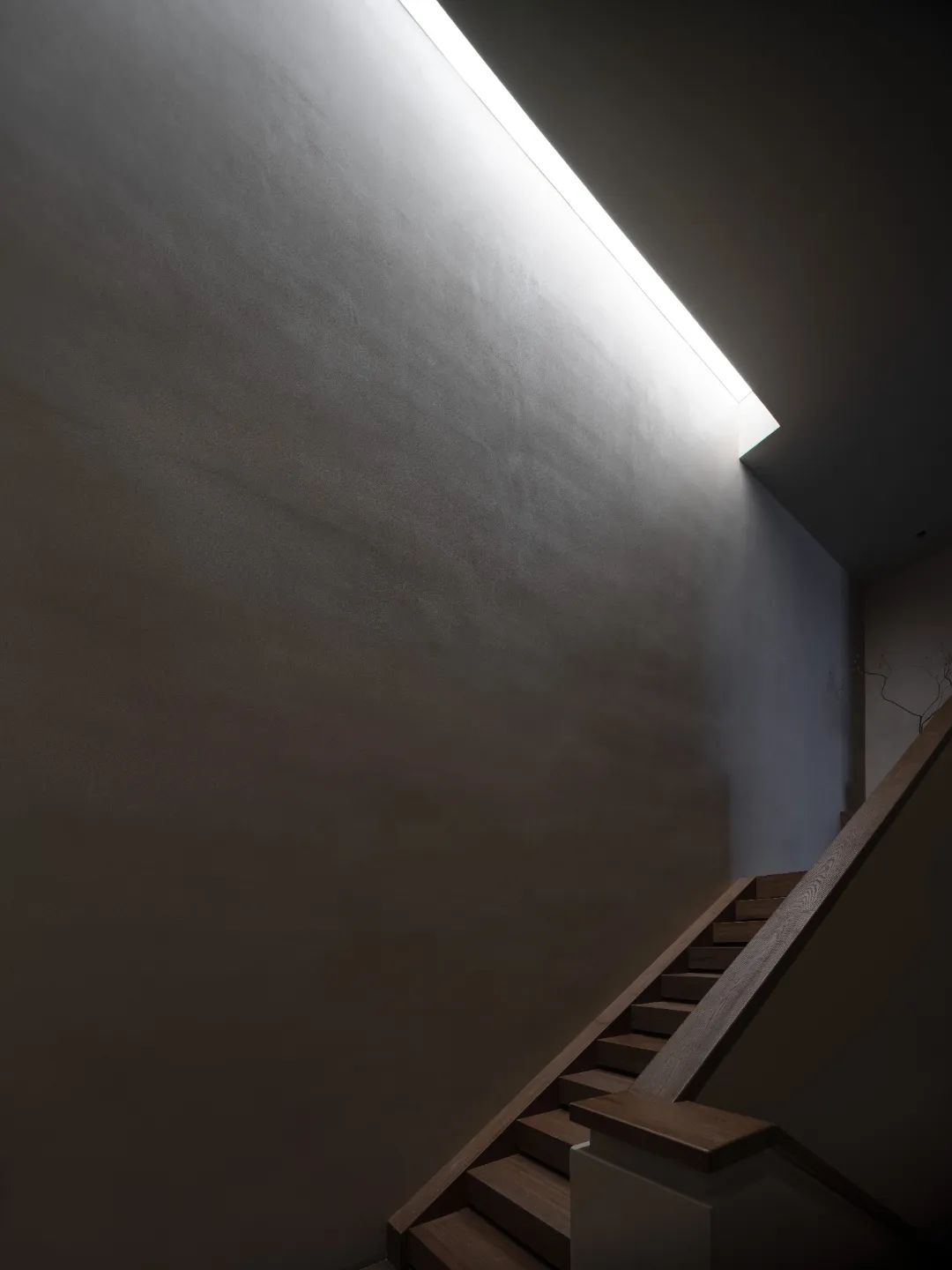 空間有時更像一座橋梁,建立起環(huán)境與人文的密切聯(lián)系。半入的微光將空間純粹化,此時的浮躁與喧囂好似無處遁形,與深邃而神秘的陰影相輔相成,構(gòu)成凝練的幾何形式感。