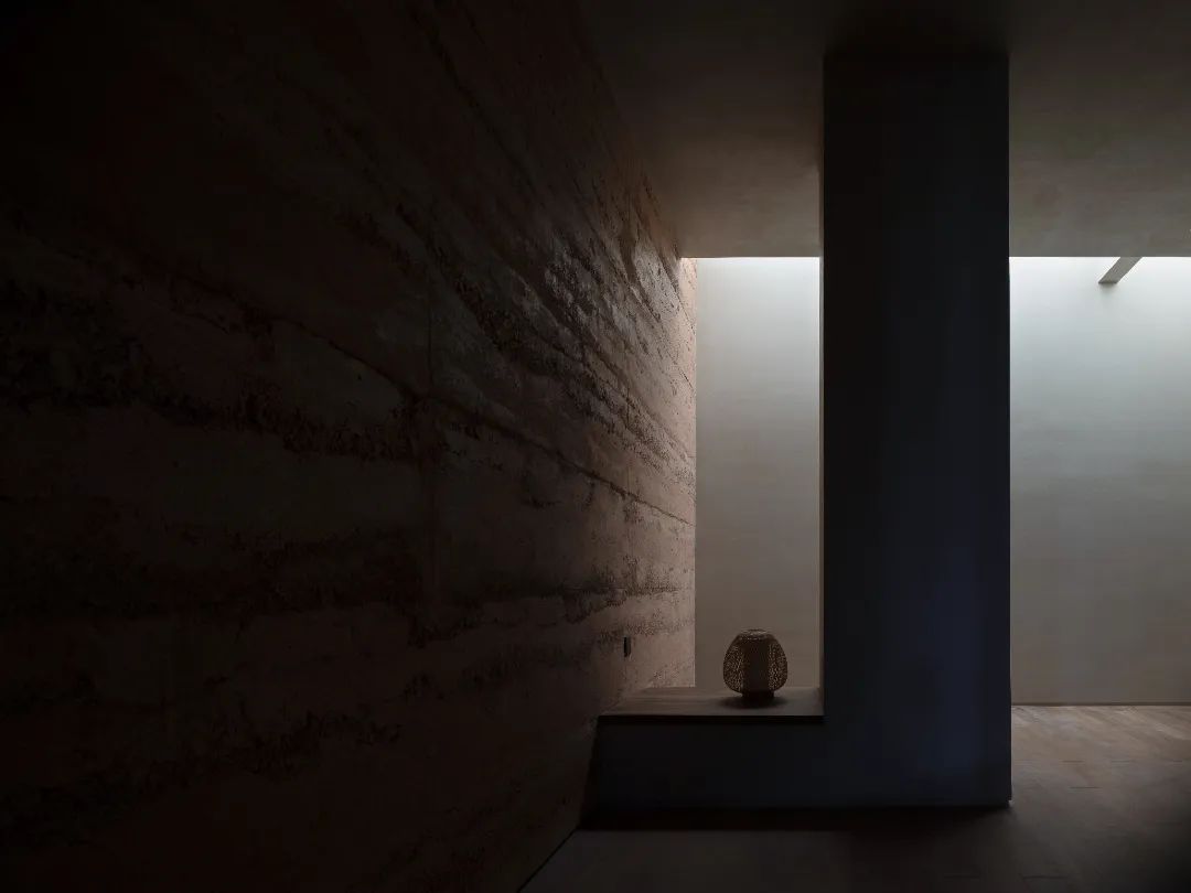 墻面夯土的自然紋理與大地的淳樸遙相呼應(yīng),充滿歲月和藝術(shù)美感,展現(xiàn)內(nèi)斂超然,張弛有度的設(shè)計美學(xué)。